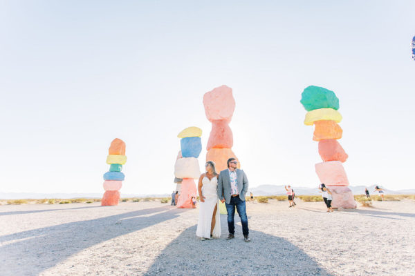 Their wedding weekend started with portraits at the Jean dry lake bed and Seven Magic Mountains art installation just south of Las Vegas. Such a great idea to split up what is often a very busy ceremony and reception day, and good excuse to take photos in locations a bit further away!