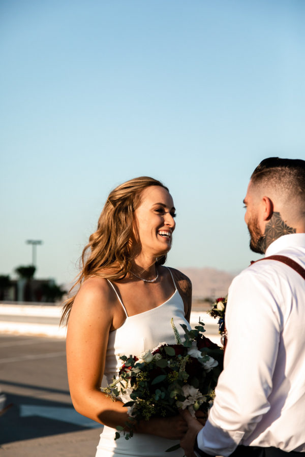 “Be sure to trust your gut in this process and don’t worry about who you might offend or disappoint along the way. Regardless of what you decide to do, when it comes down to it the only thing that really matters about that day is the person standing across from you,” she says. “Prioritize your wants and needs and have fun! Emily and Las Vegas Elopements allowed us to do all of this, and we cannot imagine our wedding day any other way.”