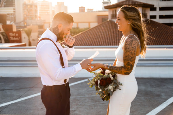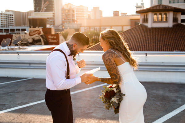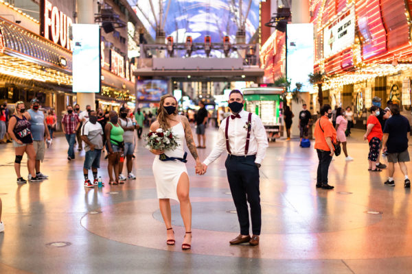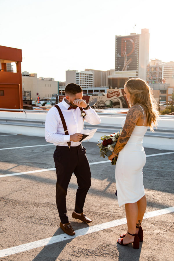One of my favorite places to spy on downtown Las Vegas and east Fremont is the top of the parking garage at El Cortez Hotel. It’s got amazing views, a built in backdrop and is surprisingly quiet. So seeing a couple marry here at sunset was fantastic. With the appropriate, safe physical distance, Cecilia and Billy tied the knot. Initially it was quite private but by the end of our ceremony a small group had gathered and applauded us they officially became husband and wife. It was a sweet surprise for Billy, as he didn’t know there was a crowd since his back was to them…look for the moment you can see his joy in the photos!