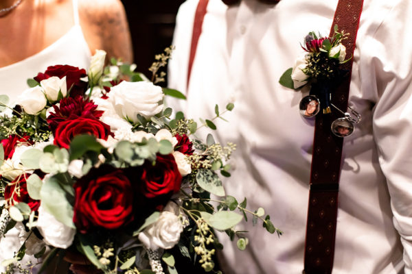 Both bride and groom carried small mementos of loved ones who couldn’t be there, including a rosary given to Cecilia by her brother, a charm with a photo of her father who passed away, and her mother’s bracelet as something borrowed. Billy wore a charm near his boutonniere with photos of his father and grandmother.