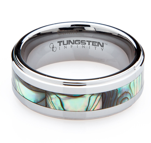 A SCUBA diver? Water lover? Shellfish fan?? This tungsten ring is embedded with the iridescent/opalescent pieces of an abalone shell, a sort of (delicious) mollusc, which would be perfect for any ocean lover. “Abalone” is available for $199.