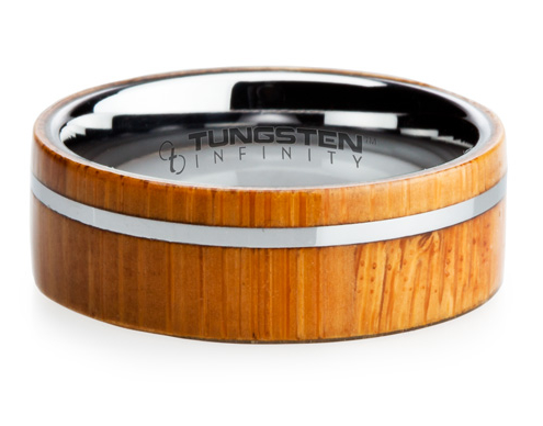 Bamboo is a sustainable material because it grows so quickly, and is quite durable. This ring would be great for someone who is environmentally aware, or just likes the look of wood on a ring. Doesn’t it kind of look like a wooden hot tub? “Bamboo” is available for $499, and is available in a mostly wood version like this one shown, or one with more tungsten and a thinner piece of wood inlay, or even with Koa or Buckeye wood.