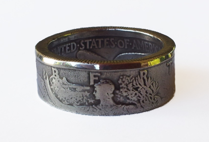 This ring is a piece of history and would be perfect for a coin collector! They aren’t tungsten, but are handmade out of a 90% U.S. silver half dollar coin, “Walking Liberty” features coin details on the inside and outside of the ring. “Walking Liberty” is available for $189.
