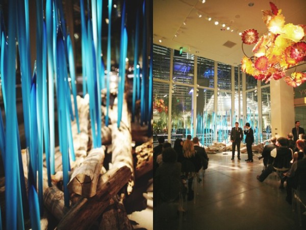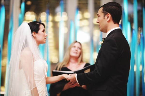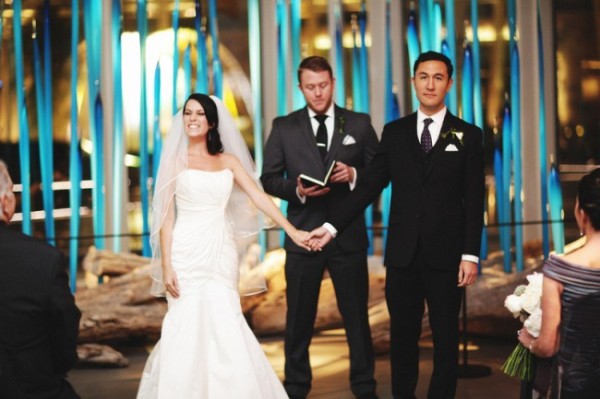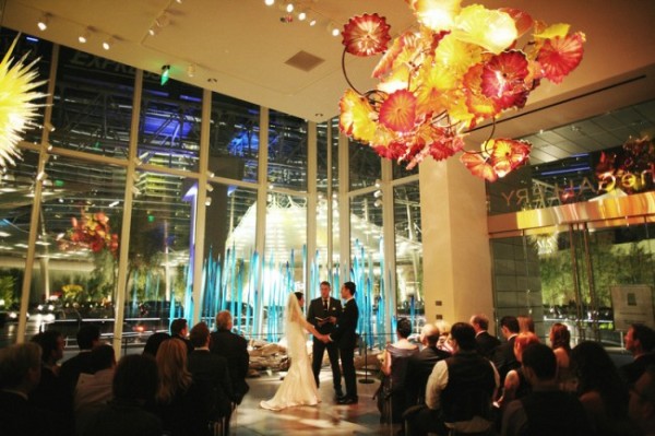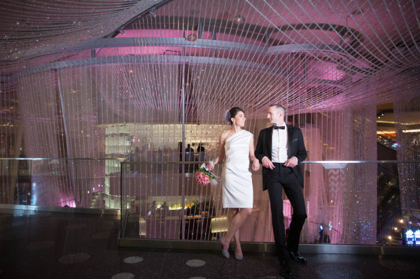 You have to think outside the box when it comes to Las Vegas weddings sometimes, especially if you are seeking the escape that old chapel cliche. Jessica and Gordon are graphic designers, so it’s probably not a surprise that their wedding had such a fresh, contemporary feel. They were married in the modern Chihuly Gallery…