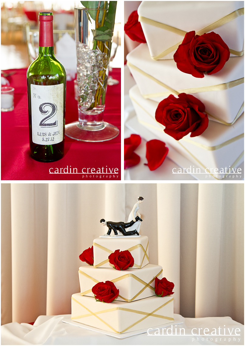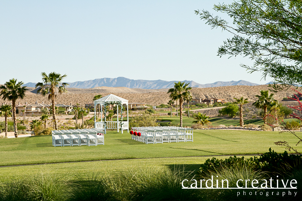 The luxury. The comfort. The awesomeness of …Converse shoes! I love that this wedding shot by Chelsy of CardinCreative featured custom embroidered Converse shoes for not just the bride (Jen) and groom (Luis), but the entire wedding party. Coupled with coordinating colors for the other wedding details, expansive greens of the Bear’s Best golf course…