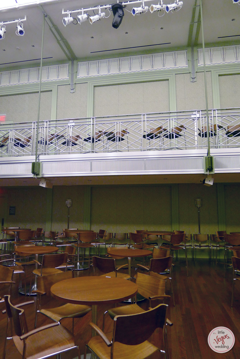 These extremely versatile rooms hold anywhere from 7-500 seated guests (620 standing) for ceremonies and receptions. The sound and views were carefully considered when designing each of the spaces. When I went on my tour of the venues, it felt like each stop was more grand than the last. Some rooms have windows or balconies with views looking at downtown Las Vegas or Symphony Park, others have elaborate staging and lighting set ups to make your grand wedding a very memorable affair.