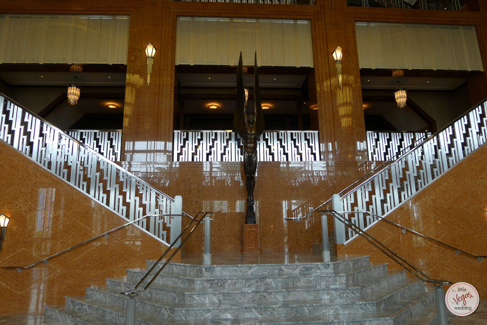 General Information: If you are looking for one of Las Vegas’s most unique venues, you have found it. This majestic location demands attention, and gets it. The art-deco style architecture was inspired by the design of the nearby Hoover Dam, perhaps most obviously reflected in the lobby statue replica by Benjamin Victor of the dam’s Winged Figures of the Republic.